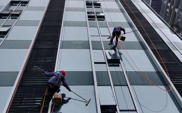 高空玻璃外墻清潔中