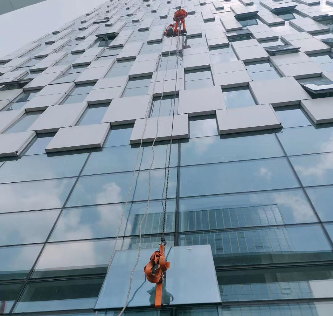 潔爾亮清潔公司為成都金牛市民中心提供高空玻璃維修更換。